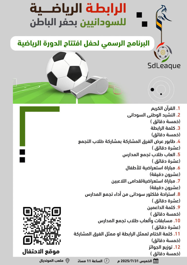 الرابطة الرياضية للسودانيين بحفر الباطن تنطلق اليوم